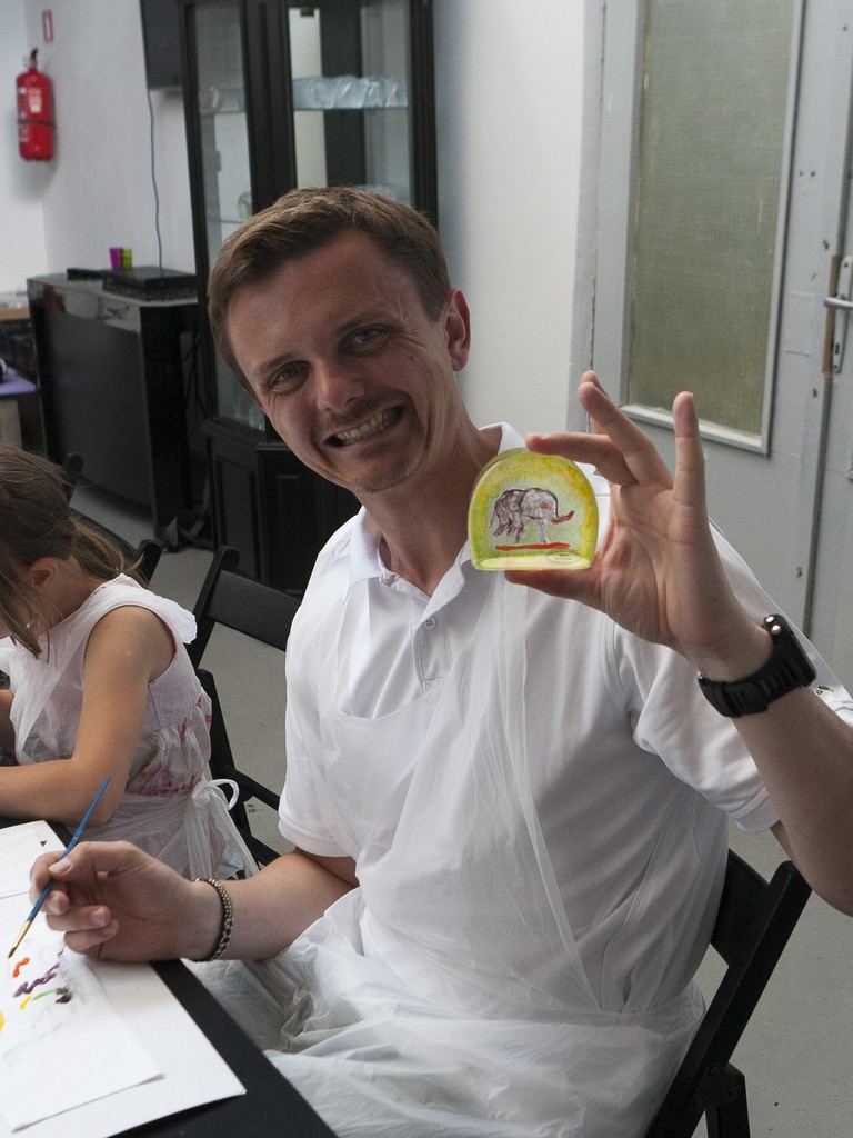 Popołudnie nadal upływało w artystycznej atmosferze. Po uroczystym urodzinowym deserze Kuby, który skończył 9 lat (sto lat !!!) podzieliliśmy się na grupy. Pierwsza z nich skoncentrowała się na wykonywaniu prac plastycznych pod tytułem „50 twarzy ryb”. Drugą grupę pochłonęły warsztaty teatralne przygotowujące do spektaklu. Nagrodą za aktywne zaangażowanie w dzisiejsze zajęcia była możliwość uczestniczenia w meczu.