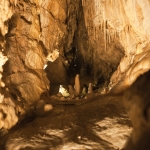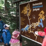 Korytarze i przesmyki tworzą tam podziemny labirynt ułożony płasko pod powierzchnią. Pierwszym szokiem była zdecydowana zmiana temperatur – z trzydziesto stopniowego upału przenieśliśmy się dwadzieścia metrów pod ziemię w strefę temperatury siedmiu stopni Celsjusza. Największym jednak zaskoczeniem były magicznie oświetlone przesmyki wypełnione wszystkimi formacjami nacieków skalnych. Podziwialiśmy stalaktyty, stalagmity i stalagnaty, a co najważniejsze nauczyliśmy się je odróżniać. Tworzą one wyjątkowe widowisko układając się w oryginalne kształty, wielowarstwowe struktury oraz specyficzne kurtyny. Do najbardziej zapamiętanych i charakterystycznych należały tak zwane „uszy słonia”, „biała myszka”, „Jaś i Małgosia”. Widok ich budził podziw, także z uwagi na sposób ich powstawania – jeden milimetr nacieku powstaje przez dwadzieścia cztery lata. Atrakcyjnym urozmaiceniem trasy zwiedzania były małe jeziorka z przeźroczystą niebiesko-zieloną wodą. W Jaskini Listopadowej znajduje się unikat „Jazerný dóm” czyli największe podziemne jezioro w Czechach. Podczas zwiedzania przewodnicy zgasili wszystkie światła, abyśmy mogli nacieszyć się pięknem i spokojem tego miejsca.