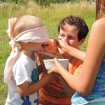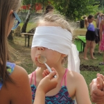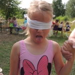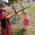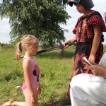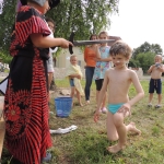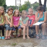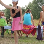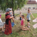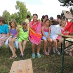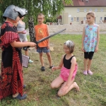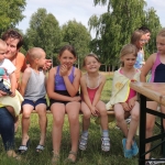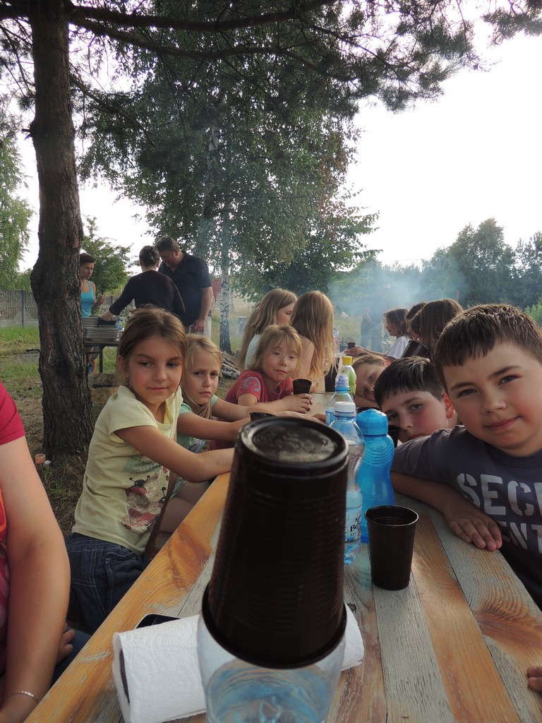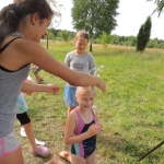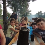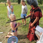 Po południowej Mszy Świętej rozpoczęliśmy przygotowania do pasowania na kolonistę. Wszyscy młodzi rycerze i damy dworu będący pierwszy raz na obozie po przejściu czterech prób zostali pasowani na kolonistę oraz dostali nowe imię. Niedzielny wieczór spędziliśmy przy ognisku na którym nasz gospodarz przygotował pyszne prażonki. Wszystkim bardzo smakowały. Jeszcze przed snem zostaliśmy zaproszeni do kina na film „Potwory i Spółka”