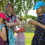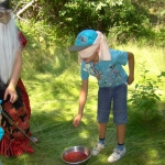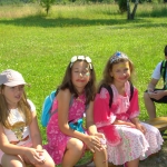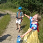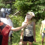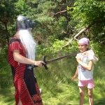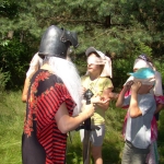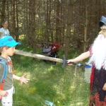 Przed nami postawiono liczne zadania, gdzie udowodnić musieliśmy naszą odwagę i twórczość oraz sprawność poruszania się w terenie. Na końcu drogi czekał na nas sługa prawowitego władcy Dobrowoja, który mianował nas na rycerzy i damy dworu Królestwa Korony. Po południowym posiłku rozpoczęliśmy poszukiwanie pierwszej części medalionu- „Bystre oko”. Wspierając się nawzajem odszukaliśmy wszystkie poszukiwane elementy przyrody w pobliskim lesie. Wieczorem spotkaliśmy się na niedzielnej Mszy Świętej w pobliskiej wiosce- Włodowice, która należy do Królestwa. Ukoronowaniem dnia było otrzymanie poszukiwanej części medalionu.