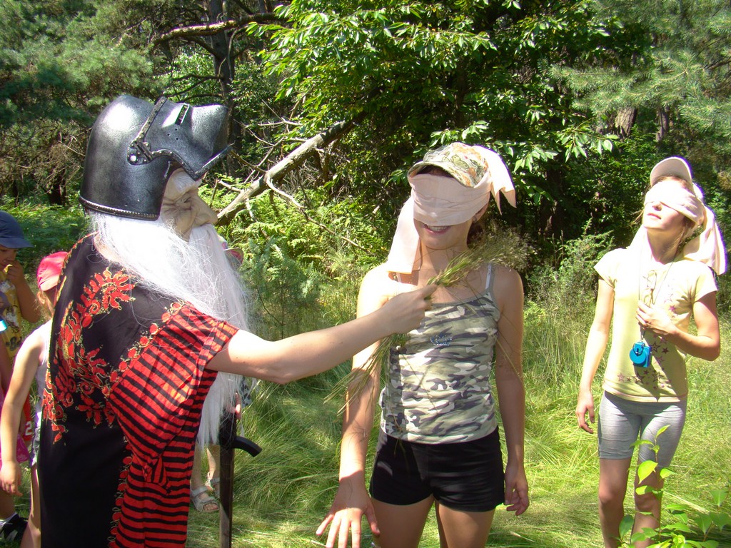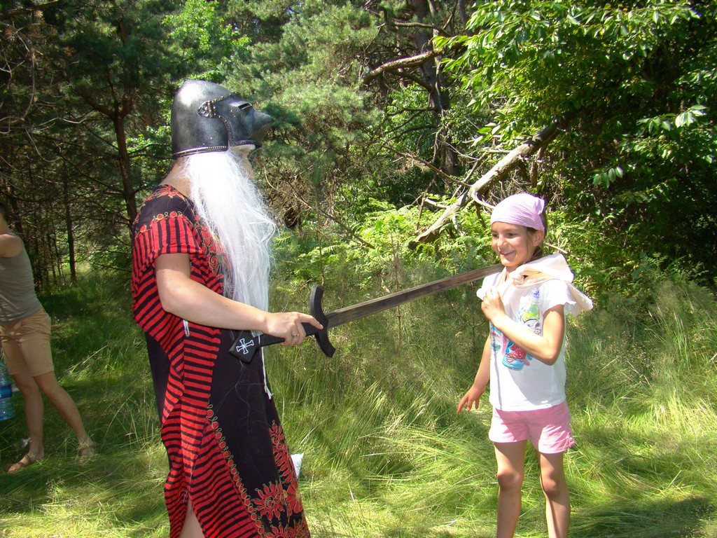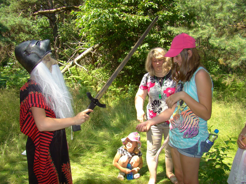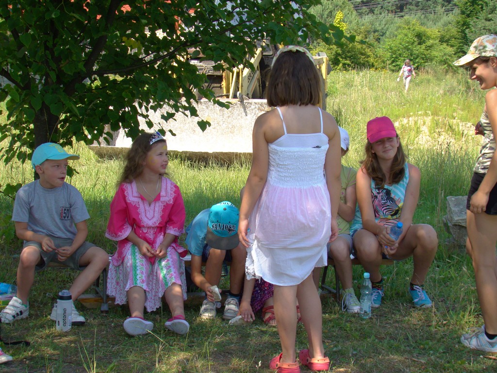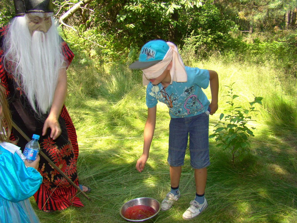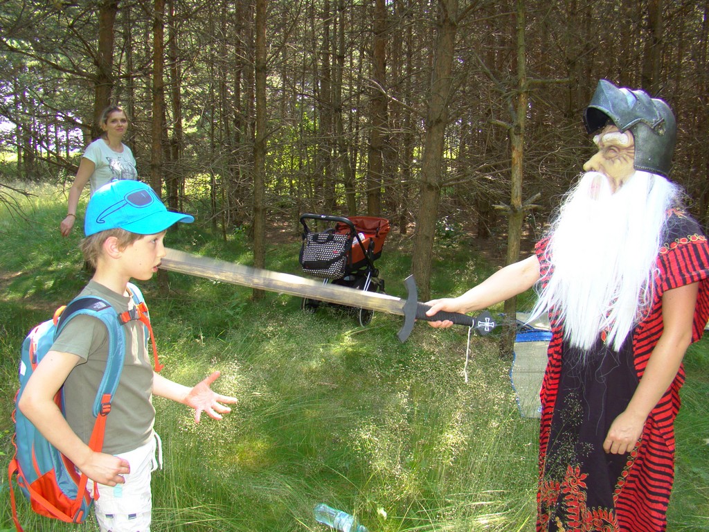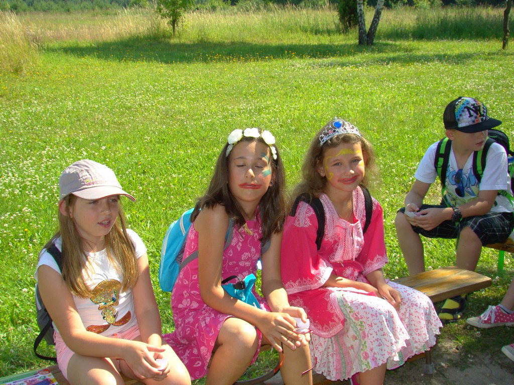 Przed nami postawiono liczne zadania, gdzie udowodnić musieliśmy naszą odwagę i twórczość oraz sprawność poruszania się w terenie. Na końcu drogi czekał na nas sługa prawowitego władcy Dobrowoja, który mianował nas na rycerzy i damy dworu Królestwa Korony. Po południowym posiłku rozpoczęliśmy poszukiwanie pierwszej części medalionu- „Bystre oko”. Wspierając się nawzajem odszukaliśmy wszystkie poszukiwane elementy przyrody w pobliskim lesie. Wieczorem spotkaliśmy się na niedzielnej Mszy Świętej w pobliskiej wiosce- Włodowice, która należy do Królestwa. Ukoronowaniem dnia było otrzymanie poszukiwanej części medalionu.