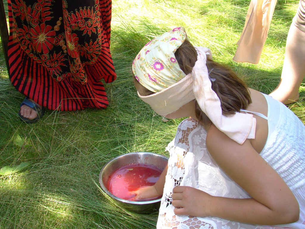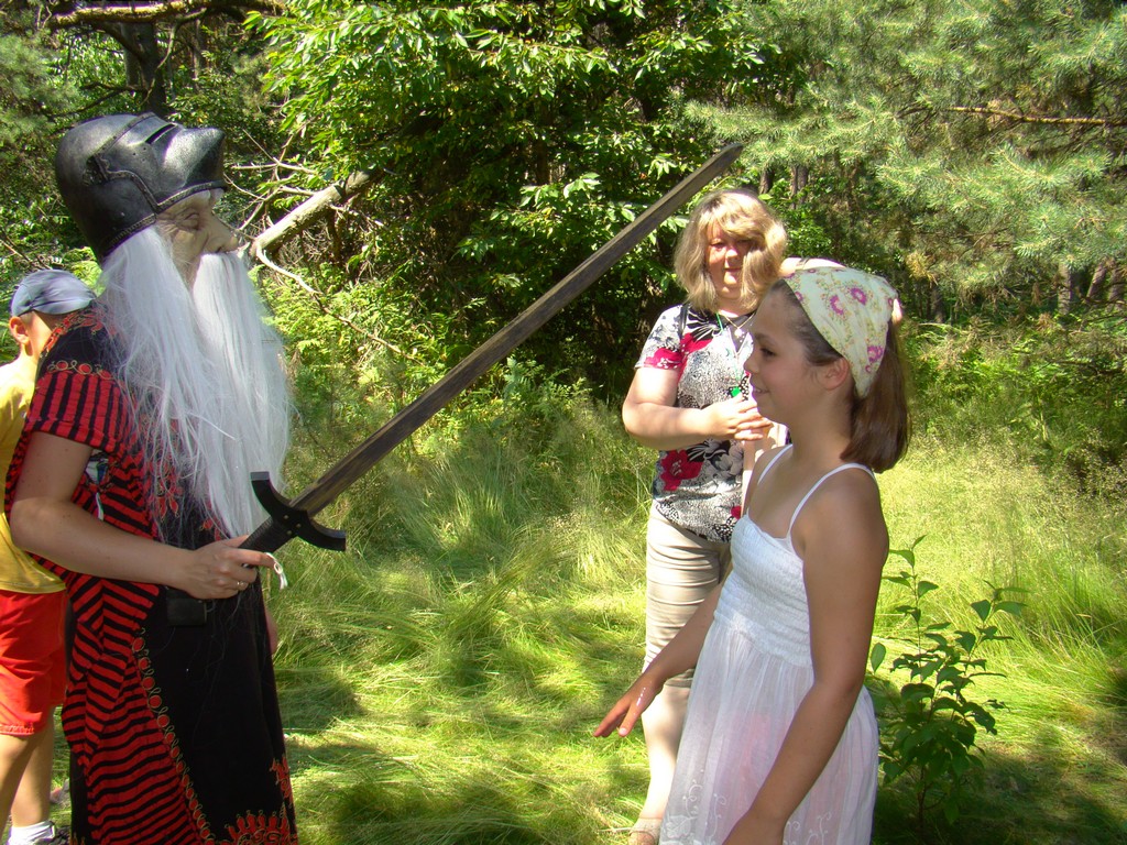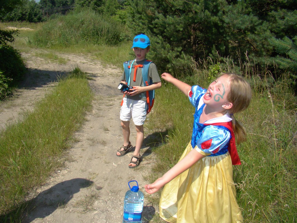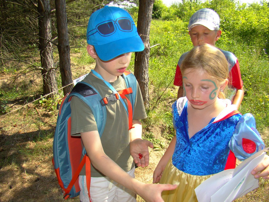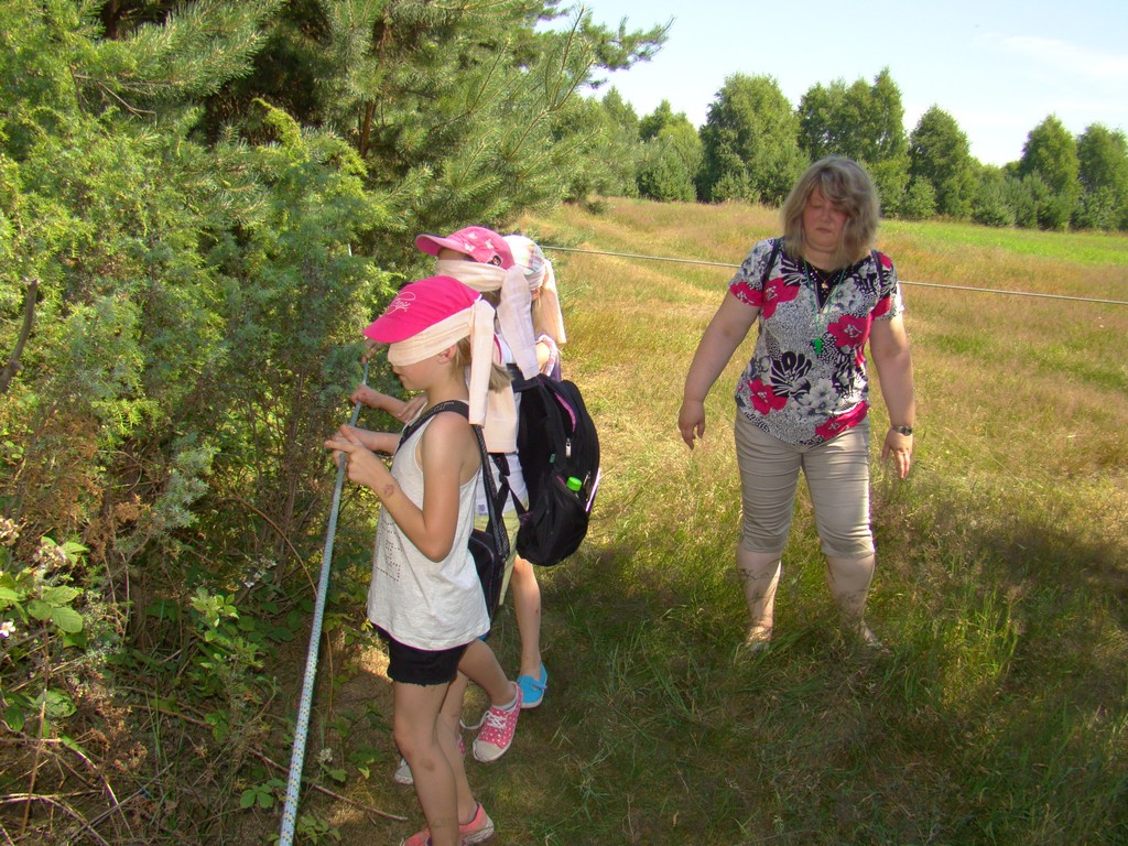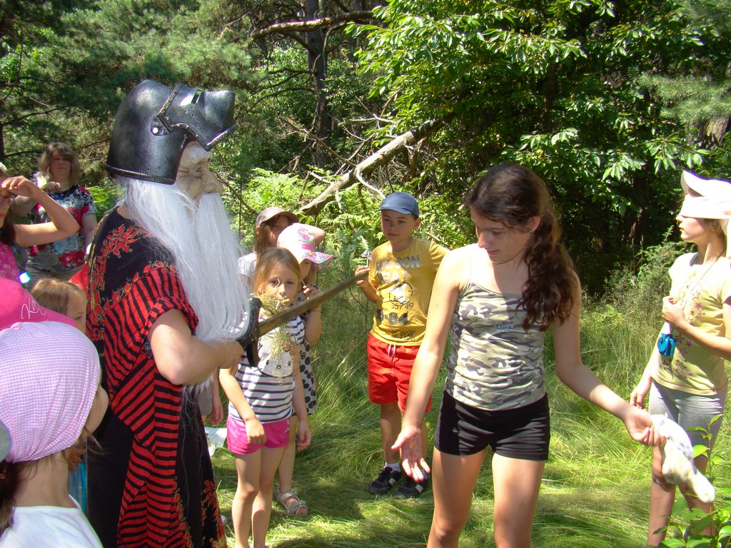 Przed nami postawiono liczne zadania, gdzie udowodnić musieliśmy naszą odwagę i twórczość oraz sprawność poruszania się w terenie. Na końcu drogi czekał na nas sługa prawowitego władcy Dobrowoja, który mianował nas na rycerzy i damy dworu Królestwa Korony. Po południowym posiłku rozpoczęliśmy poszukiwanie pierwszej części medalionu- „Bystre oko”. Wspierając się nawzajem odszukaliśmy wszystkie poszukiwane elementy przyrody w pobliskim lesie. Wieczorem spotkaliśmy się na niedzielnej Mszy Świętej w pobliskiej wiosce- Włodowice, która należy do Królestwa. Ukoronowaniem dnia było otrzymanie poszukiwanej części medalionu.