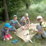 Zadanie to wykonywaliśmy wspólnie, pomagając osobie wykonującej skok dostać się na wysoko drzewo. Pod okiem starszych rycerzy instruktorów i przy pełnej asekuracji, z uśmiechem na ustach każdy z nas po kolei szybował w dół. W międzyczasie odbywaliśmy lekcję zielarstwa, poznając rośliny Królestwa Korony (efekty naszej pracy- widoczne są na zdjęciach).