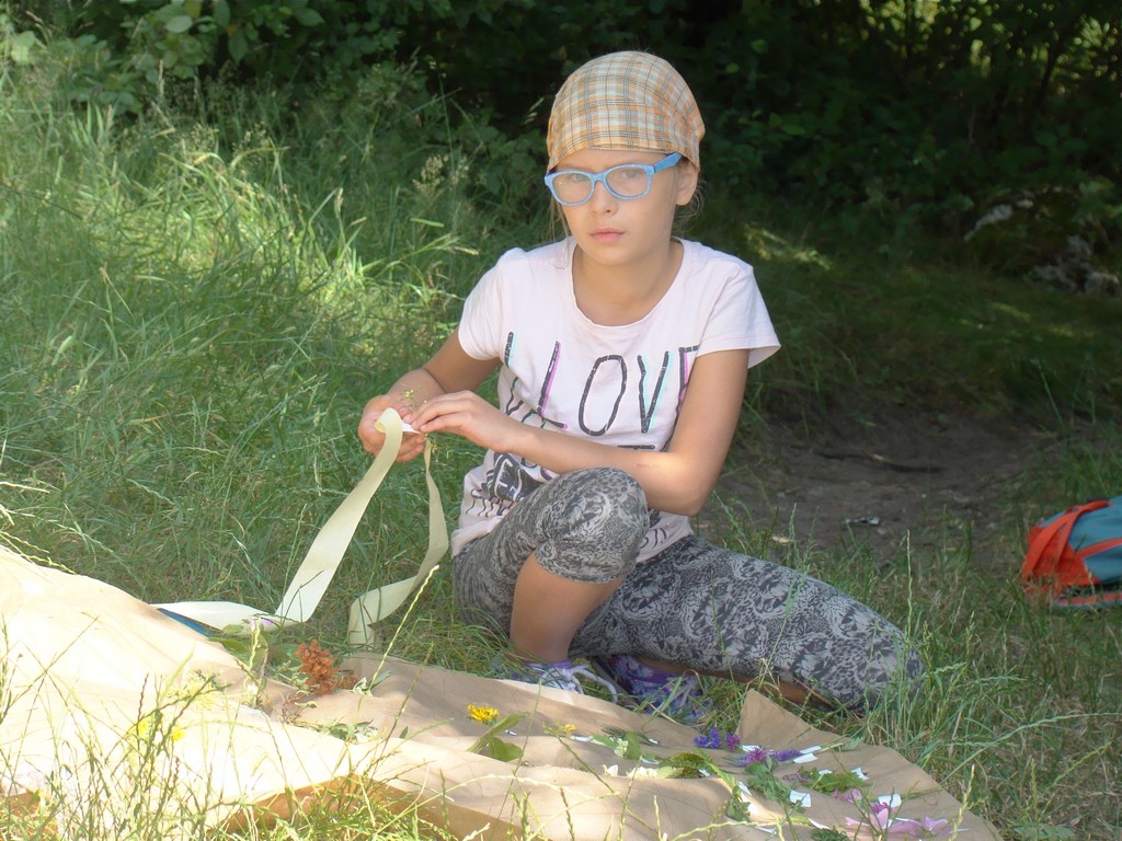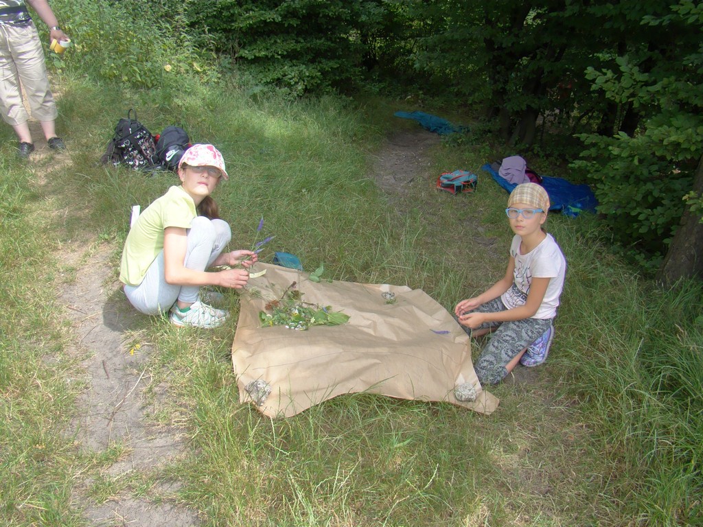 Zadanie to wykonywaliśmy wspólnie, pomagając osobie wykonującej skok dostać się na wysoko drzewo. Pod okiem starszych rycerzy instruktorów i przy pełnej asekuracji, z uśmiechem na ustach każdy z nas po kolei szybował w dół. W międzyczasie odbywaliśmy lekcję zielarstwa, poznając rośliny Królestwa Korony (efekty naszej pracy- widoczne są na zdjęciach).