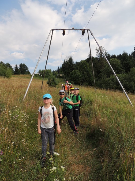 Przed kolacją nastąpił wyczekiwany przez wielu uczestników moment – podchody. W dwóch grupach wędrowaliśmy po, zostawionych przez panią Bożenkę znakach. Po drodze wykonywaliśmy liczne zadania, które pozwoliły zachwycić się otaczającą nas przyrodą. Zmęczeni dwugodzinną wędrówką dotarliśmy na kolację.